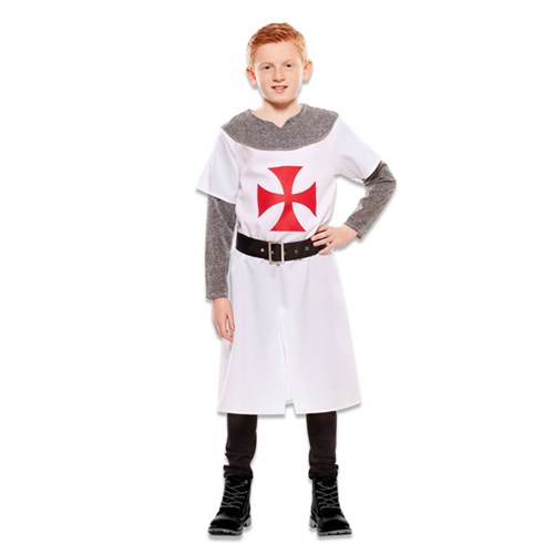 Kostuum middeleeuwse ridder wit, 5-6 jaar (105-121cm). Kostuum bestaat uit: tuniek en riem.